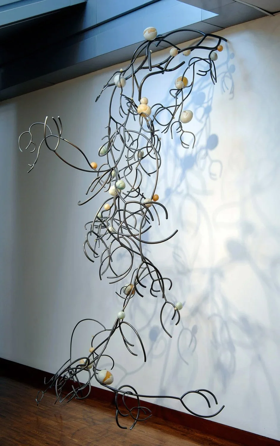 This body of work represents several different installations over the years, yet, they are part of the same series. Lessening, a metalworking process that alters surface structure through controlled reduction, relates to the steel works in that both explore fractal-like patterning, despite using different materials.